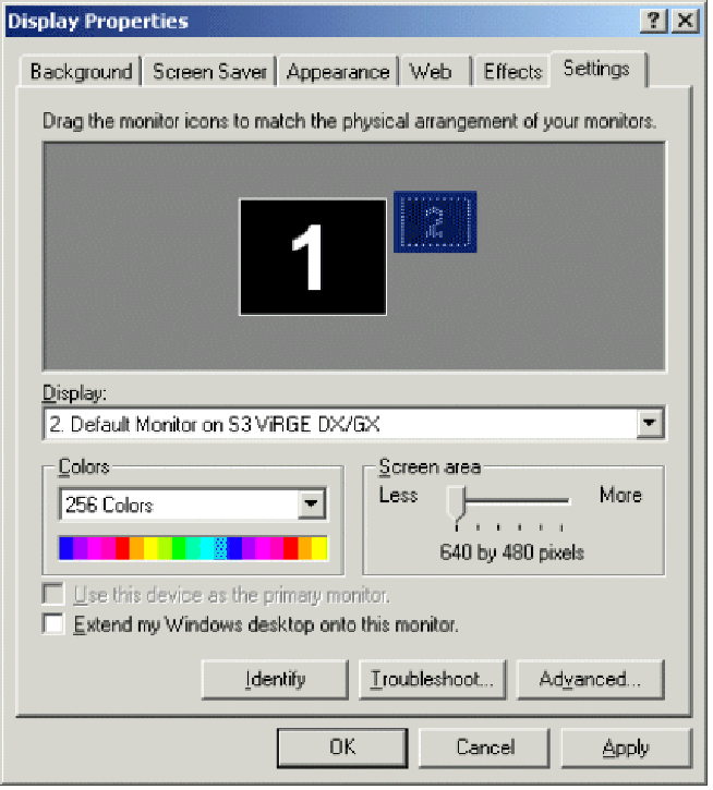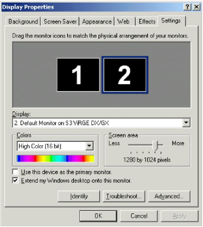 ·Click the image of the second monitor and then select the Extend my Windows desktop onto this monitor check box.