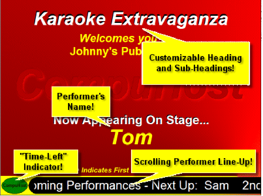 ·Scrolling Performer Line-Up - Allows your Performers to visually keep track of when they will be appearing! Also, you may add a customizable promotional message to the end of the line-up by utilizing the Promo-Trailer feature!